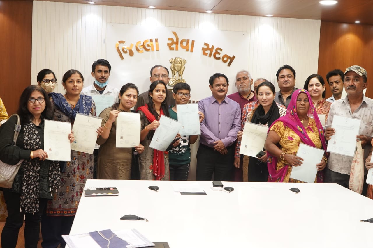 આ વેળાએ અધિક નિવાસી કલેકટર પરિમલ પંડ્યા અને અગ્રણી મેઘરાજભાઈ તેમજ રાજેશભાઈ મહેશ્વરી સહિતના મહાનુભાવો પણ ઉપસ્થિત રહ્યા હતા. અત્રે નોંધનીય છે કે, રાજ્ય અને કેન્દ્રની આઇ.બી. ટીમ દ્વારા યોગ્ય ચકાસણી થયા બાદ તેઓને સ્વીકાર પત્ર એનાયત કરવામાં આવે છે. જેને આધારે બાકીના નિયમોનુસાર જરૂરી પૂરાવા રજૂ કર્યા બાદ જિલ્લા કલેક્ટર કચેરી દ્વારા આખરી નાગરિકતા પ્રમાણપત્ર આપવામાં આવે છે. ઉલ્લેખનીય છે કે વર્ષ ૨૦૧૬ અને ૨૦૧૮ ના ગેઝેટથી ગુજરાત રાજ્યમાં અમદાવાદ, ગાંધીનગર અને કચ્છ જિલ્લા કલેક્ટરને અફધાનિસ્તાન, બાંગ્લાદેશ અને પાકિસ્તાની લધુમતિ ધરાવતા (હિન્દુ, શીખ, બૌધ્ધ, જૈન, પારસી અને ખ્રિસ્તી) ધર્મના લોકોને નાગરિકતા અધિનિયમ અંતર્ગતની પ્રક્રિયા અનુસરીને ભારતીય નાગરિકતા આપવામાં આવે છે.