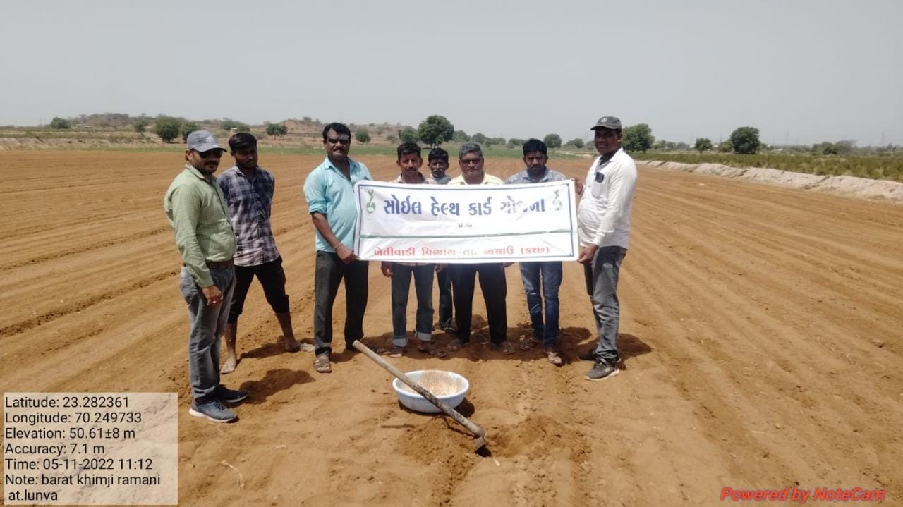 કચ્છ જિલ્લામાં ખેતીવાડી શાખા દ્વારા વર્ષ ૨૦૨૨-૨૩માં સોઈલ હેલ્થ કાર્ડ યોજનાના અમલીકરણ માટે જમીનના નમૂના લેવાની કામગીરી શરૂ કરવામાં આવેલ છે. જમીનના નમુના એકત્રીકરણ માટે ગામની ચારેય દિશામાંથી નમુના લેવામાં આવશે. સદર નમૂનાઓ જમીન ચકાસણી પ્રયોગશાળામાં મોકલી પૃથક્કરણ કરવામાં આવનાર છે અને પૃથક્કરણ કર્યા પછી સોઈલ હેલ્થ કાર્ડ આપવામાં આવશે. કચ્છ જિલ્લામાં ૧૦ તાલુકાઓના ૮૯૮ ગામડામાંથી એક ગામ દીઠ ૧૦ નમૂના એમ કુલ ૮૯૮૦ જમીનના નમૂનાઓ એકત્રીત કરી જમીન ચકાસણી પ્રયોગશાળામાં પૃથક્કરણ અર્થે મોકલવામાં આવશે. જમીનમાં કયા તત્વોનું કેટલું પ્રમાણ છે ? કયા તત્વોની ઉણપ છે ? તે જાણીને ખેડૂતોને કેટલા પ્રમાણમાં ખાતર નાખવું જોઈએ તેની માહિતી પૃથક્કરણથી મળી રહેશે તેવું જિલ્લા ખેતીવાડી અધિકારી, જિલ્લા પંચાયત ભુજ-કચ્છ દ્વારા જણાવાયું છે.