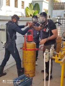 આ મોકડ્રીલ દરમ્યાન કોલોરીન ગેસ લીકેજ થતા ઓપરેટરીંગ સ્ટાફ દ્વારા તાત્કાલીક કેમીસ્ટ, ક્લોરીન એટેન્ડન્ટ તથા ફાયરબ્રીગેડને જાણ કરતા કેમિસ્ટ અજયસિંહ જાડેજા, કે.એ.મેસ્વાણી, એચ.સી.નાગપરા, ક્લોરીન એટેન્ડન્ટ ગોપાલ ડાભી, મિકેનિક મયુર બાબરીયા ત્થા ફાયરબ્રીગેડના સ્ટેશન ઓફિસર આર.એ.વિગોરા, લીડિંગ ફાયરમેન જયપાલસિંહ ઝાલા, જુનિયર ફાયરમેન સંદિપ કાલિયા, અજય મિશ્રા તથા ના.કા.ઇ. સી.બી. મોરી, ના.કા.ઇ. જે.એ.ઝાલાની હાજરીમાં મહર્ષિ દયાનંદ સરસ્વતિ સ્વિમિંગ પૂલ પર લીકેજ બંધ કરી પરીસ્થિતી પર કાબુ મેળવેલ. સમગ્ર મોકડ્રીલ એડી.સિટી ઇજનેર(ઇચા.) કે.પી.દેથરીયા તથા ચીફ ફાયર ઓફીસર આઇ. વી. ખેરનાં માર્ગદર્શન હેઠળ યોજાઈ હતી.