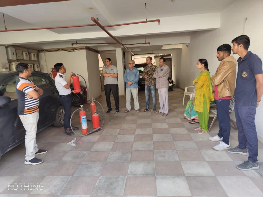 ઉપરોક્ત ફાયર સેફટીની તાલીમ દરમ્યાન રૂદ્રાક્ષ એપાર્ટમેન્ટ, એરપોર્ટ સામે રાજકોટ ૦૮ થી ૧૦ લોકો રહેવાસીઓ આ મોકડ્રીલ અને તાલીમમાં જોડાયેલ. જે મોકડ્રીલ અને તાલીમમાં ફાયર એન્ડ ઈમરજન્સી વિભાગના સ્ટેશન ઓફીસર આનંદ બારિયા અને ફાયરમેન સહિતના સ્ટાફ દ્વારા બિલ્ડીંગમાં લગાવવામાં આવેલ ફાયર સીસ્ટમ અને ફાયર સેફટીના સાધનોને આગ લાગે ત્યારે કઇ રીતે ઉપયોગ કરવો, શું કરવું અને શું ન કરવું જોઇએ તેમજ આગ બુઝાવવા માટેની ફાયર સીસ્ટમ અને સાધનો તથા ફાયર એક્ષ્સ્ટીંગ્યુસર નો ઉપયોગ કેવી રીતે કરવો, અને જાળવણી કઇ રીતે કરવી, તેમજ પોતાનો તથા અન્યનો બચાવ કઇ રીતે કરવો તે અંગે તાલીમનું આયોજન કરવામા આવેલ.