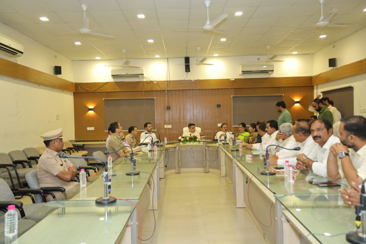ભાવનગર જિલ્લાની મુલાકાતે પધારેલા ગૃહ રાજ્યમંત્રી હર્ષભાઇ સંઘવીએ આજે ભાવનગર સર્કિટ હાઉસ ખાતે પદાધિકારીઓ અને અધિકારીઓ સાથે બેઠક કરી હતી.