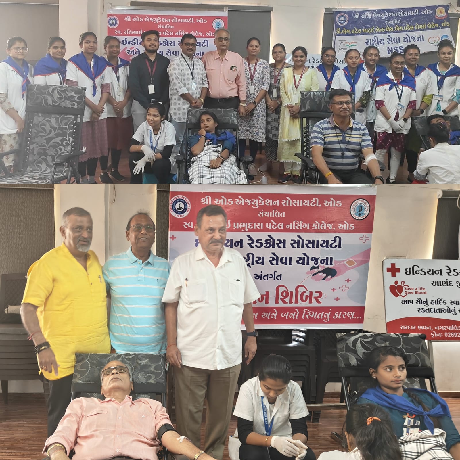 જેમાં કોલેજના ટ્રસ્ટીઓ, નર્સિંગ કોલેજના વિદ્યાર્થીઓ,પ્રોફેસરો, નગરના યુવાવર્ગ તેમજ સમાજ સભ્યોએ ઉત્સાહભેર રક્તદાન કર્યું લોકજાગૃતિ લાવવા માટે પહેલું રક્તદાન કોલેજના ટ્રસ્ટી મુકુંદભાઈ પટેલે કર્યું.
