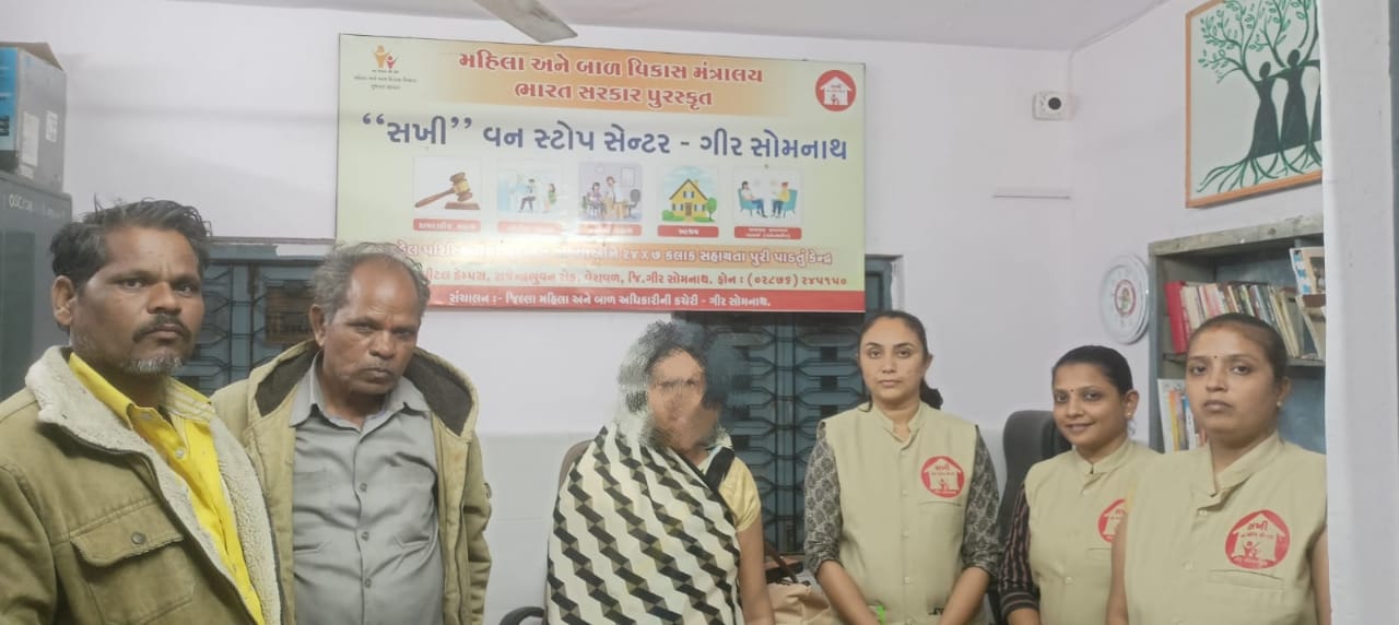 ચીમનગંજ પોલીસ સ્ટેશન દ્વારા પરિવારનો ટેલીફોનિક સંપર્ક કરીને મહિલાના પરિવારજનોને ગીર સોમનાથ સખીવન સ્ટોપ સેન્ટર આવવા માટે રવાના કરવામાં આવ્યાં હતાં. મહિલાના પરિવારના ટેલિફોનિક સંપર્કમાં રહીને સખી વન સ્ટોપ સેન્ટર સુધી પહોંચ્યા હતાં. મહિલાના પરિવારના સભ્યો પતિ તેમજ તેમના સસરાના કહેવા મુજબ મહિલા કોઈને પણ જાણ કર્યા વગર ઘરેથી ગુમ થઇ હતી અને જેની શોધખોળ તેઓ તેમના પરિવાર સગા સંબંધીમાં તેમજ તેમના વિસ્તારના દરેક જગ્યાએ કરતા હતાં. પરંતુ મળી આવેલ ન હોય તેમજ તેઓ દ્વારા પોલીસ સ્ટેશનમાં ગુમની ફરિયાદ પણ કરવામાં આવી હતી. મહિલાના પરિવારના સભ્યોને સખી વન સ્ટોપ સેન્ટરમાં ગીર સોમનાથ હોવાની જાણ થતા અને અરજદાર બહેનને સહી સલામત જોતા પરિવારમાં ખુશીનો માહોલ સર્જાયો હતો અને મહિલાનું પરિવાર સાથે મિલન કરાવ્યું હતું.
