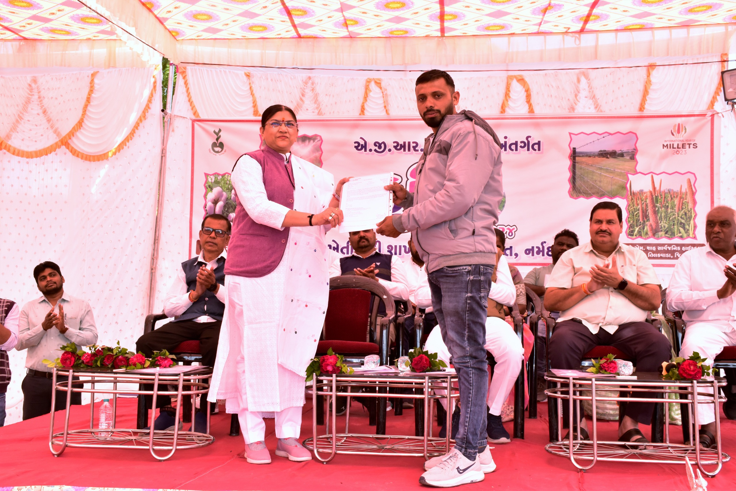 માત્ર એટલું જ નહીં પણ રસાયણ વિનાનો શુધ્ધ આહાર મળી રહે તે માટે પ્રાકૃતિક કૃષિને વેગવંતી બનાવવા માટે સરકાર દ્વારા સતત પ્રયત્નો થઈ રહ્યા છે. પ્રાકૃતિક કૃષિને પણ નર્મદા જિલ્લામાં વ્યાપક પ્રમાણમાં પ્રતિસાદ મળી રહ્યો છે. જેના ઉદાહરણ રૂપે આજે સ્ટેજ ઉપર આવીને ખેડૂતો જે પોતાના અનુભવો રજૂ કરી રહ્યા છે તે આપણે નજરે નિહાળી રહ્યા છીએ અને તેમાંથી શીખ મેળવવા જેવી છે. નર્મદા જિલ્લાના ખેડૂતો રસાયણિક ખાતર અને જંતુનાશકોનો ત્યાગ કરી ગામે ગામ પ્રાકૃતિક કૃષિ અપનાવી રહ્યા છે જે ખરેખર ગર્વની બાબત છે. તેમને એક ઓર્ગેનિક ફાર્મિંગનું માર્કેટ પણ મળી રહે તેવી વ્યવસ્થા તરફ પણ સરકાર પ્રયત્નશીલ છે. નાંદોદના ધારાસભ્ય ડો. દર્શનાબેન દેશમુખે આ પ્રસંગે જણાવ્યું કે, એક સમય હતો જ્યારે આપણા ખેડૂતો બળદનો ઉપયોગ કરીને ખેતી કરતા હવે તેનું સ્થાન નવી ટેક્નોલોજી અને યાંત્રિક સાધનોએ લીધું છે જેથી ખેતીમાં આમૂલ પરિવર્તનો આવ્યા છે. નર્મદા જિલ્લાના ખેડૂતો ખેતી સાથે પશુપાલન પણ કરે છે. ત્યારે દેશી ગાય આધારિત પ્રાકૃતિક કૃષિ આપણી પાસે ખૂબ સારો વિકલ્પ છે.