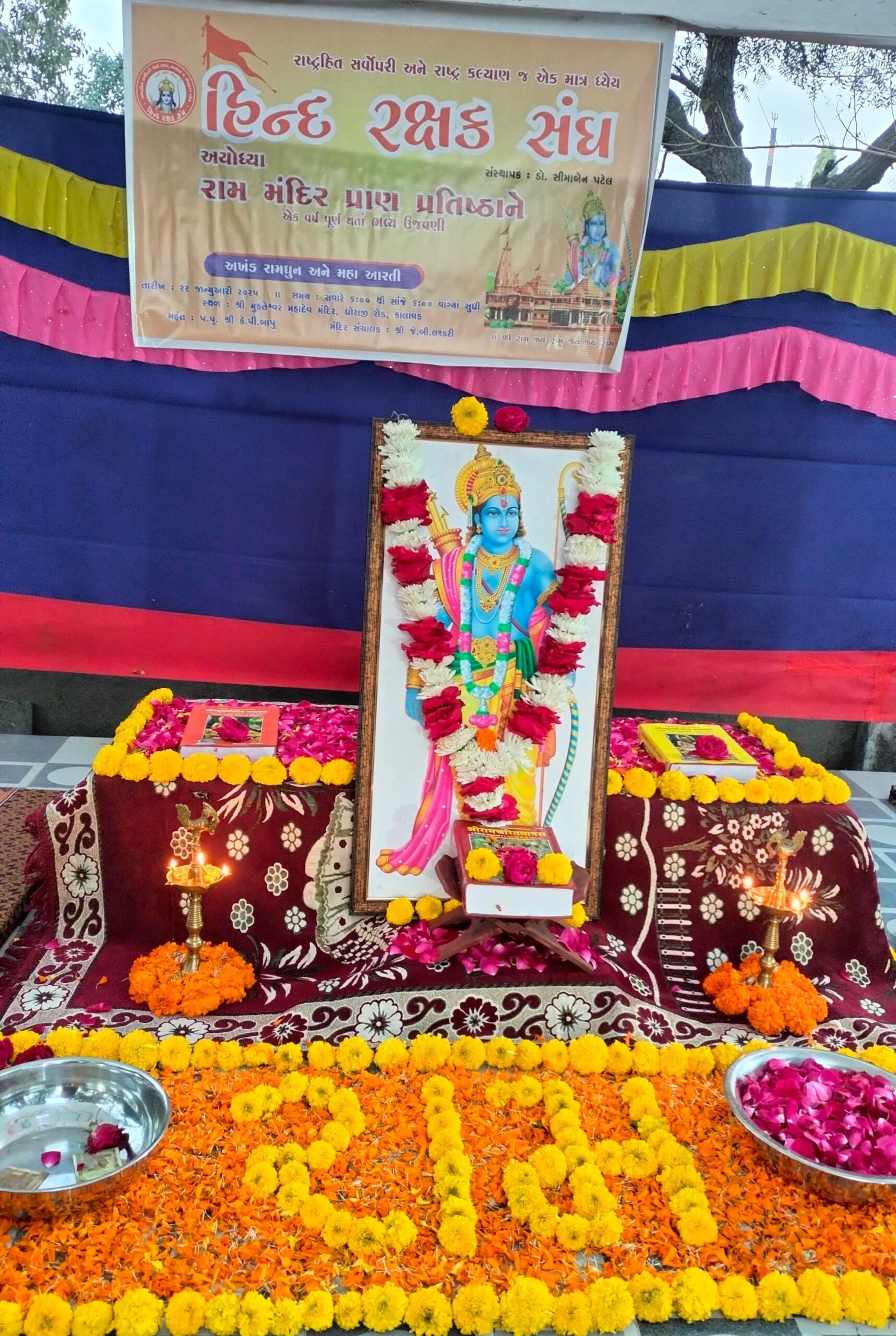 અયોધ્યા ખાતે શ્રીરામ પ્રાણ પ્રતિષ્ઠાને એક વર્ષ પૂર્ણ થતાં ઉજવણીનાં ભાગરૂપે ડૉ. સીમાબેન પટેલ સંચાલિત ‘હિન્દ રક્ષક સંધ’ દ્વારા શ્રી મુક્તેશ્વર મહાદેવ મંદિર ખાતે અખંડ રામધૂન નો કાર્યક્રમ યોજાયો.