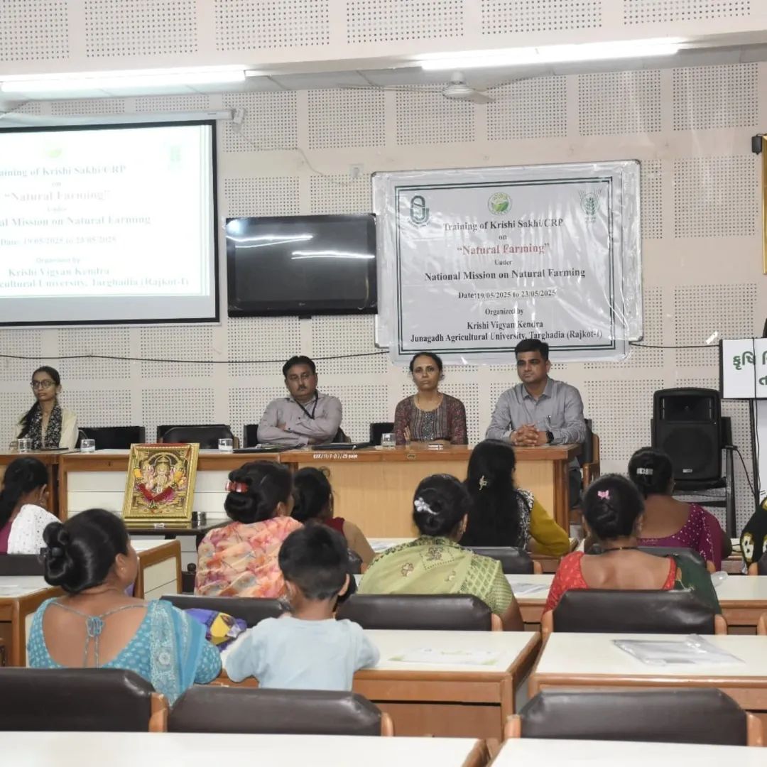 રાજકોટ જિલ્લાના તરઘડીયા કૃષિ વિજ્ઞાન કેન્દ્ર ખાતે ૫ દિવસીય ‘કૃષિ સખી તાલીમ’ યોજાઈ હતી,જેમાં કૃષિ વિભાગના નિષ્ણાતો અને વૈજ્ઞાનિકો દ્વારા ૩૨ બહેનોને પ્રાકૃતિક કૃષિ અને પશુપાલન વિષયક થિયરી અને પ્રેક્ટિકલ જ્ઞાન અપાયું.
